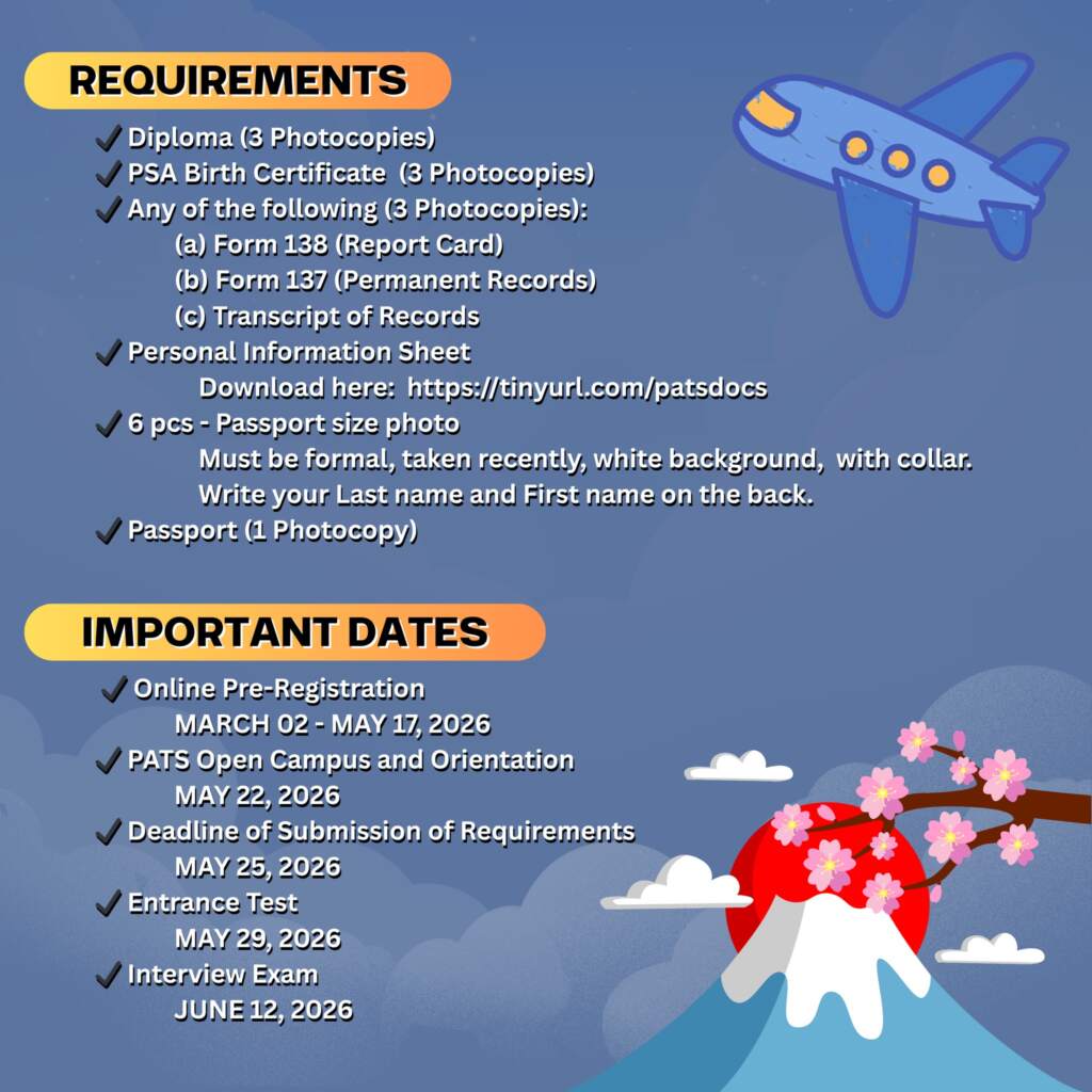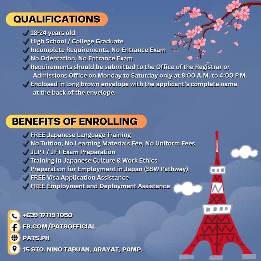 If you are committed, disciplined, and ready to pursue opportunities in Japan, this is your chance. To qualify for admission, applicants must complete the pre-registration process through the link below: